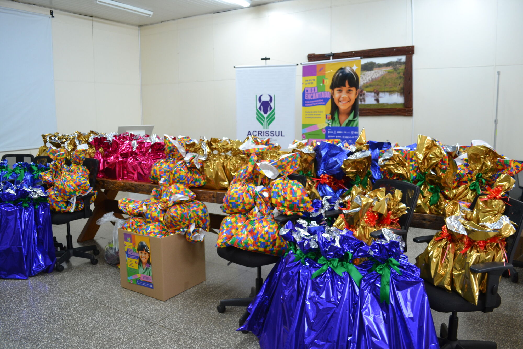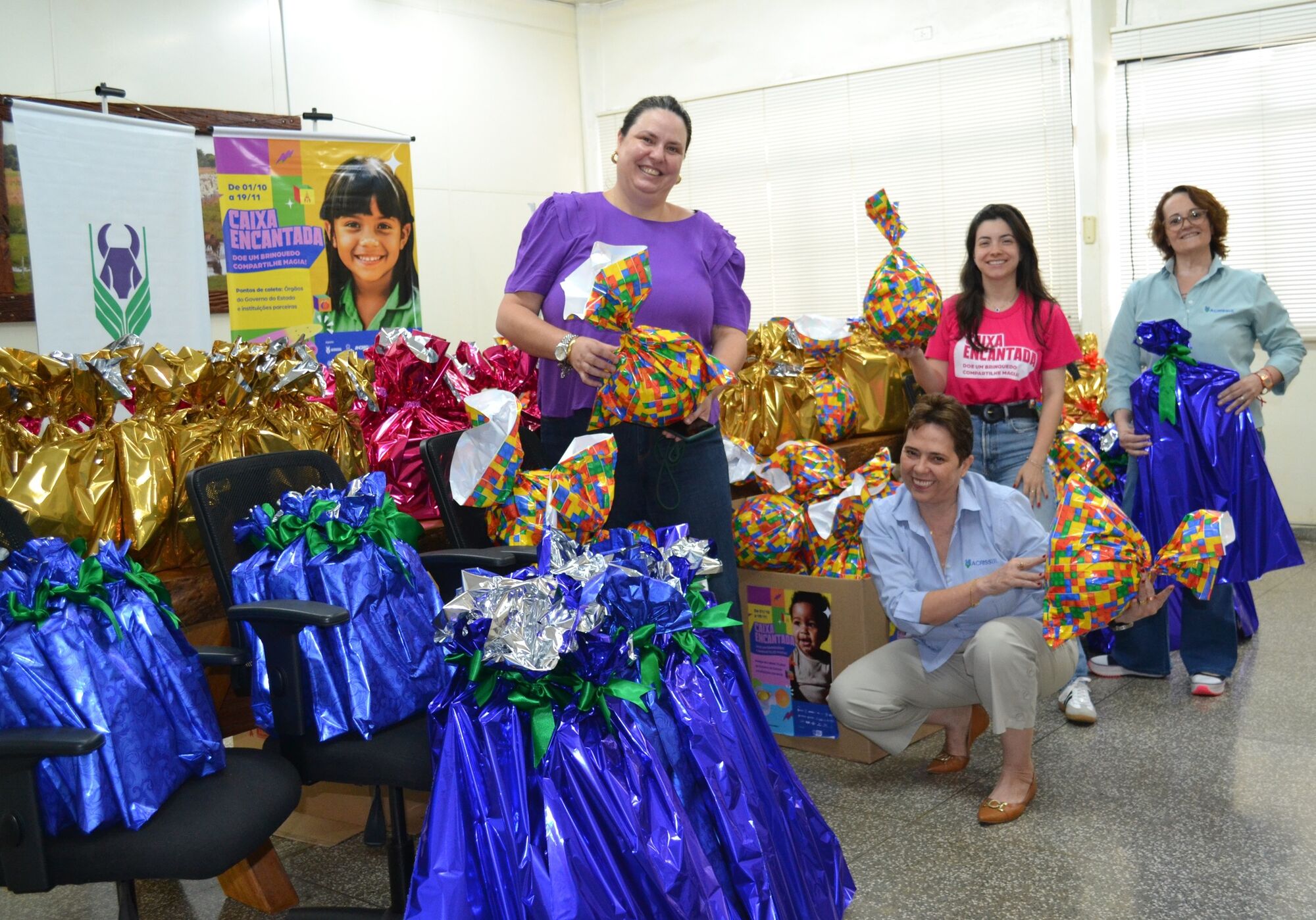 Com a presença da primeira-dama de MS, Mônica Riedel, e o secretário-adjunto de Administração, Roberto Gurgel, as diretoras da Acrissul Aurora Real e Roberta Maia entregaram nesta quinta-feira no Centro de Convenções "Albano Franco", em Campo Grande, os 285 brinquedos arrecadados pela entidade durante a campanha Caixa Encantada.