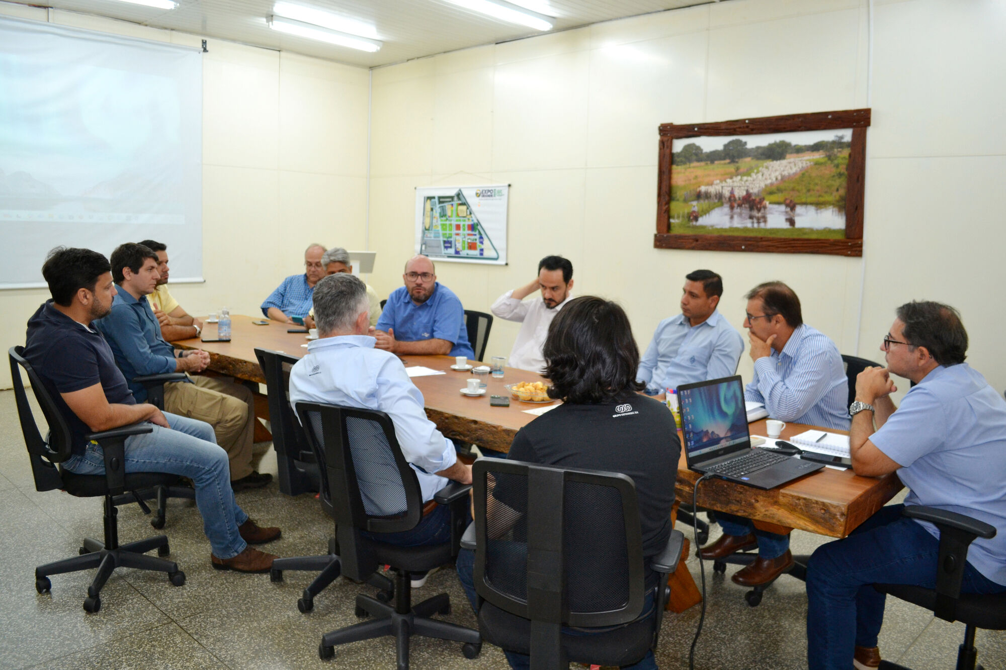 A Acrissul sediou nesta terça-feira um encontro entre o empresário Flávio Malmann, CEO da empresa QR Cattle, produtores rurais e diretores da Iagro-MS e da Embrapa-Gado de Corte.