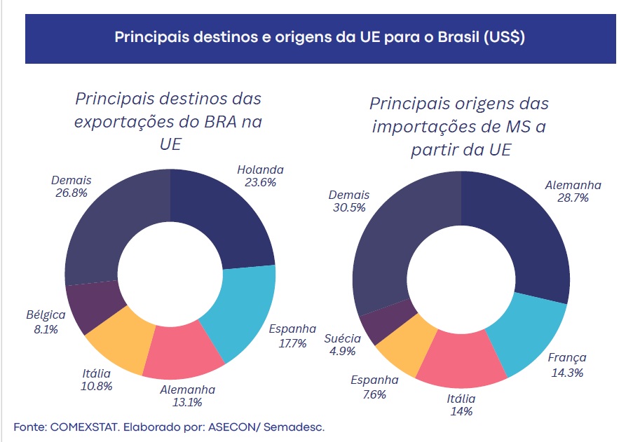 A União Europeia foi o segundo bloco econômico mais importante para as exportações de Mato Grosso do Sul no ano passado, incluindo os mercados da Ásia, América do Norte, Oriente Médio, África, Oceania e Mercosul. O Estado manteve relações comerciais com 23 países da União Europeia em 2025, sendo 20 como destinos de exportações e 23 como origens de importações.