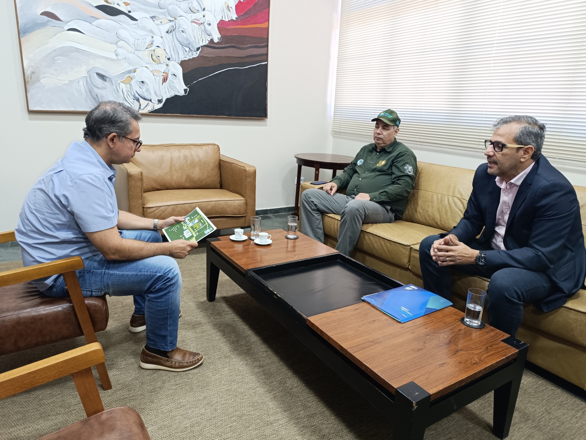 O presidente da Acrissul, Guilherme Bumlai, recebeu na manhã desta terça-feira, 21, a visita institucional do reitor da UEMS (Universidade Estadual de Mato Grosso do Sul), professor Laércio Alves de Carvalho. Além de estreitar as relações entre as instituições, a UEMS veio discutir uma futura parceria da associação para a realização do Pantanal Tech 2026, evento que acontece no início de junho no campus da universidade de Aquidauana. Participou também do encontro o professor Henrique Fernandes.